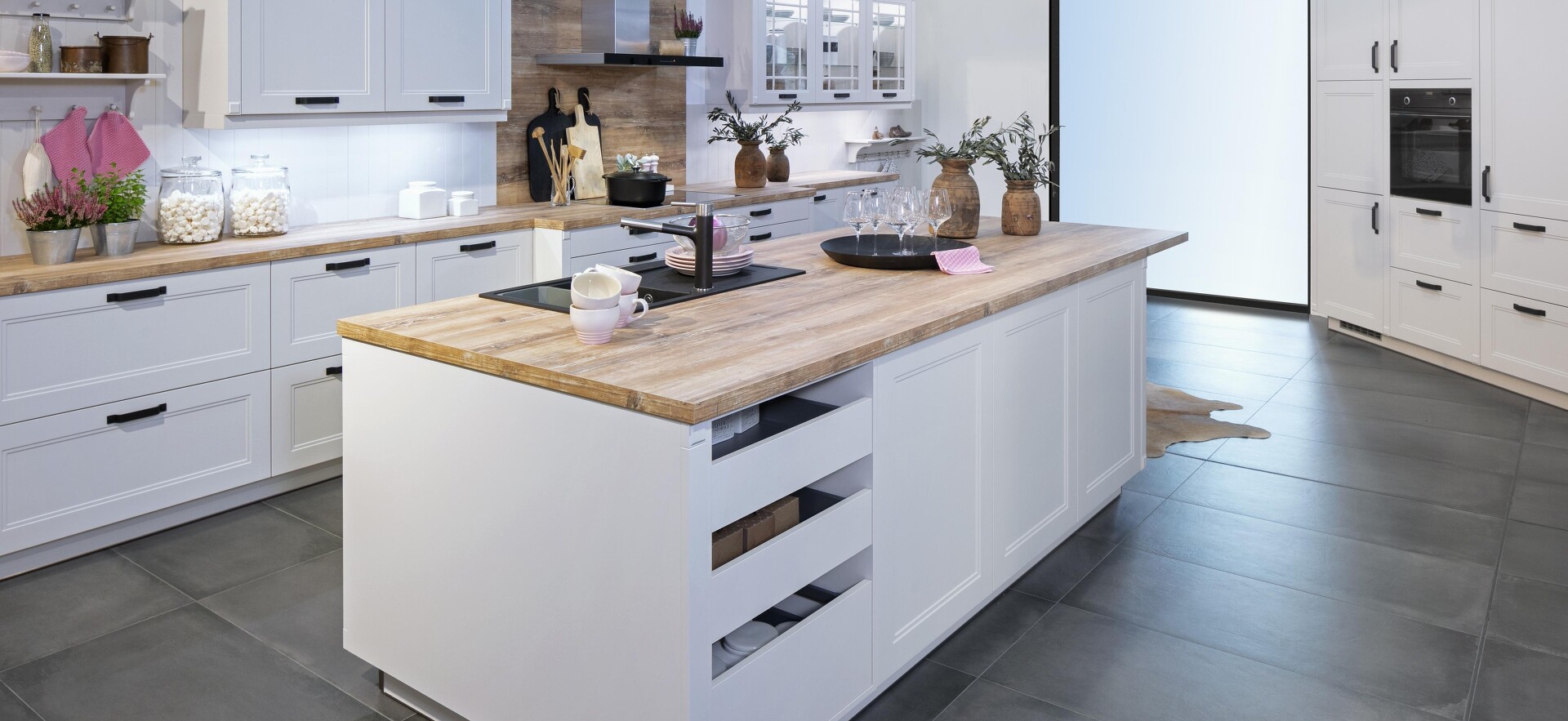 In der Küche bieten solche Auszugsregale hohen Bedienkomfort und natürlich auch einen gewissen Einblick in das, was sie beherbergen. Sämtliche Küchenschränke sollte man nicht damit ausstatten, dann wirkt die Küche schnell unruhig und möglicherweise auch unaufgeräumt. Am schönsten wirken Englische Züge als Duo oder Trio nebeneinander eingebaut, am besten noch mit kontrastierender Frontfarbe. So werden sie zu einer gelungenen Küchenzierde.
